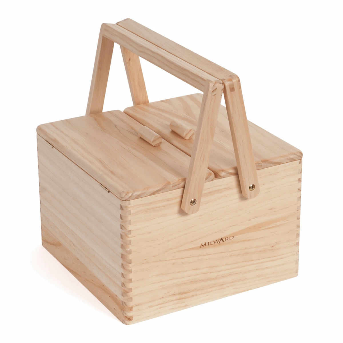 Includes inner accessories tray with securing clips. Made from pine wood. Finger joint construction. Laser etched with Milward logo.